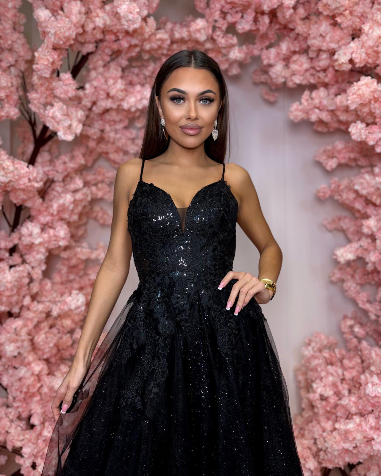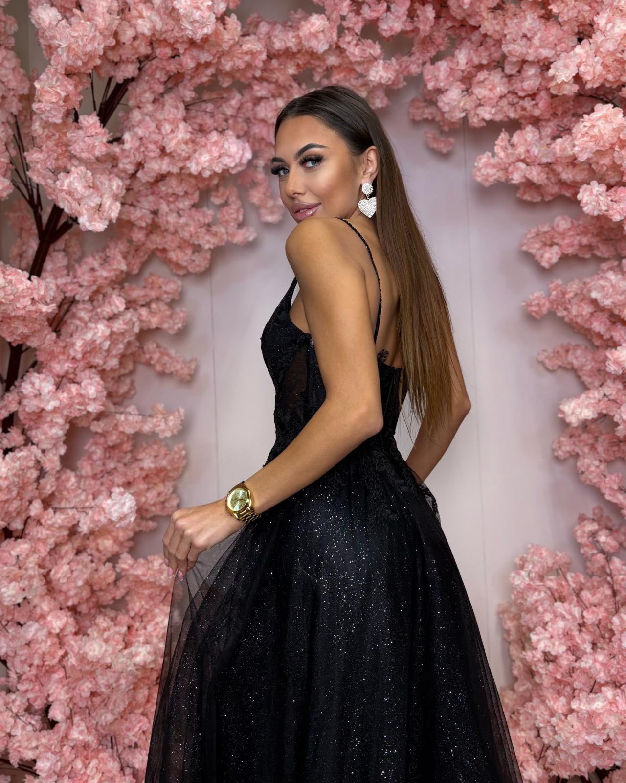 Sukienka Ambeliy to kwintesencja kobiecości i subtelnego blasku. Jej lekki, tiulowy krój sprawia, że każda chwila w niej staje się wyjątkowa. Góra kreacji została pięknie ozdobiona delikatnymi zdobieniami, które przyciągają wzrok i podkreślają naturalne piękno sylwetki.