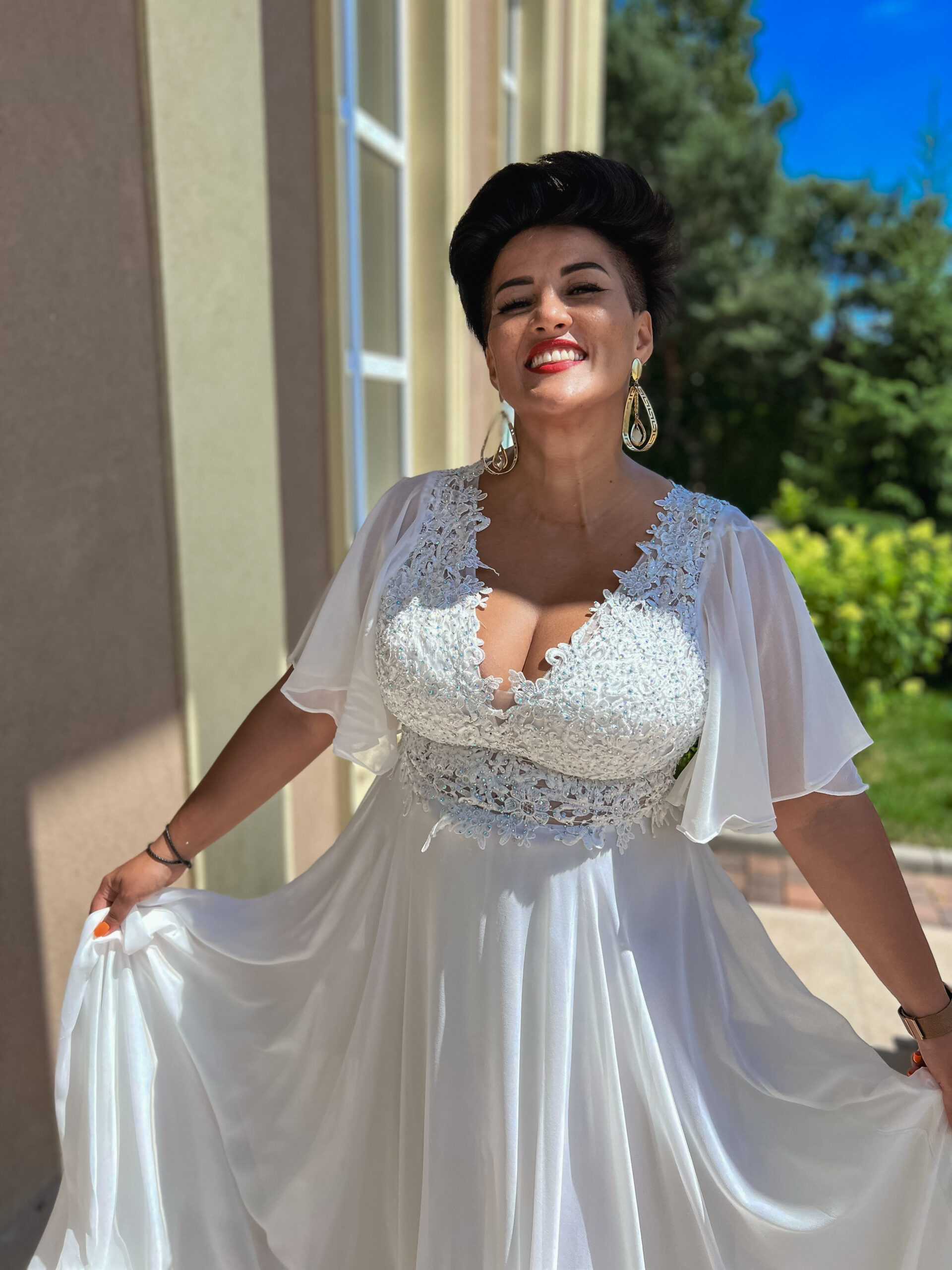 Sukienka Arczi to elegancka, biała kreacja o długości maxi, stworzona z myślą o wyjątkowych, uroczystych okazjach. Model zachwyca klasycznym krojem oraz dopracowanymi detalami, które podkreślają kobiecą sylwetkę i nadają całości szlachetnego charakteru.