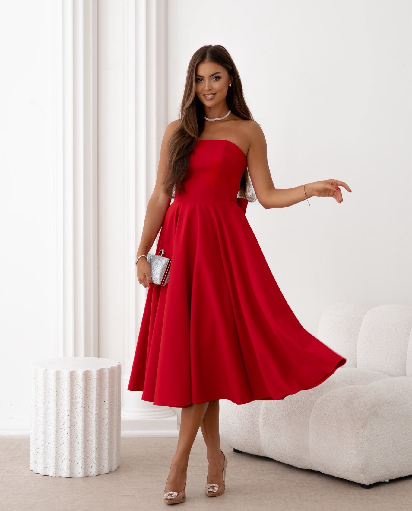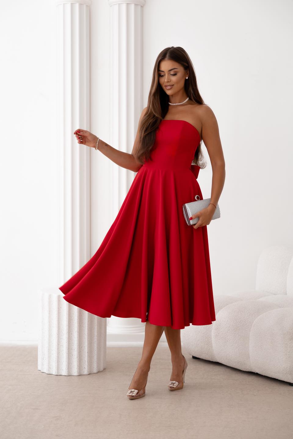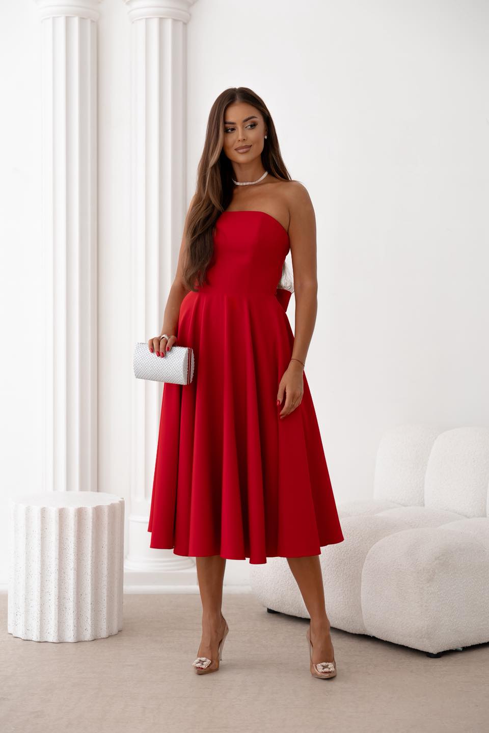 Napisz pierwszą opinię o „Asti midi czerwona rozkloszowana sukienka z kokardą”