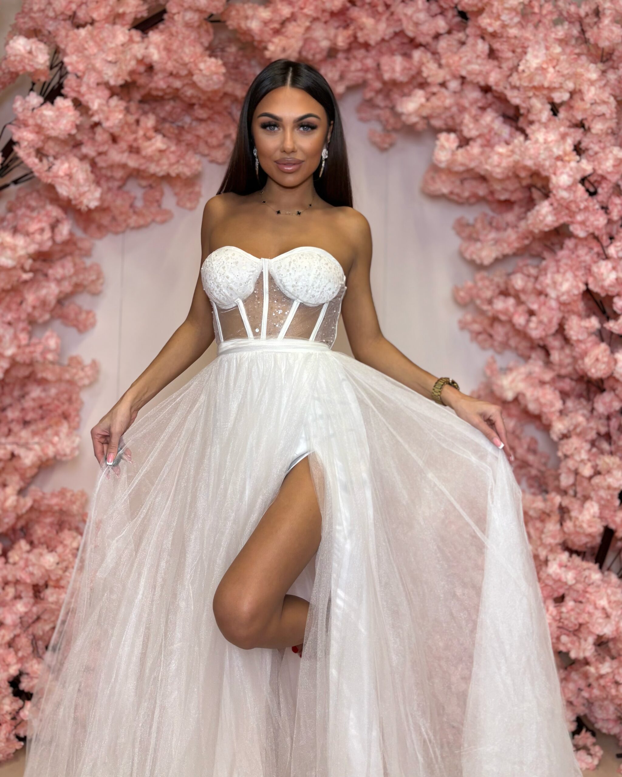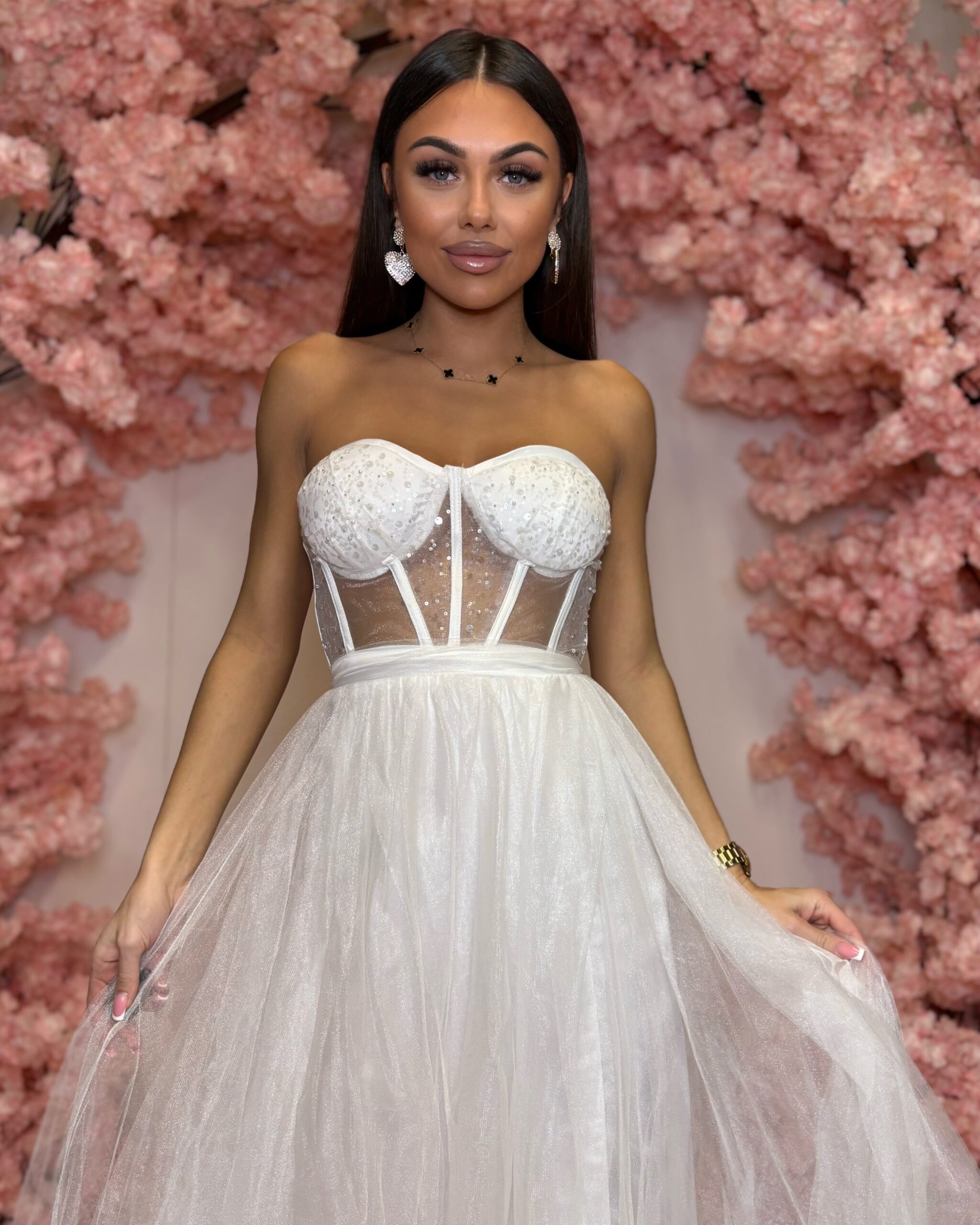 Cudowna tiulowa sukienka księżniczka na wyjątkowe okazje. Góra sukienki zdobiona. Dół zwiewny.