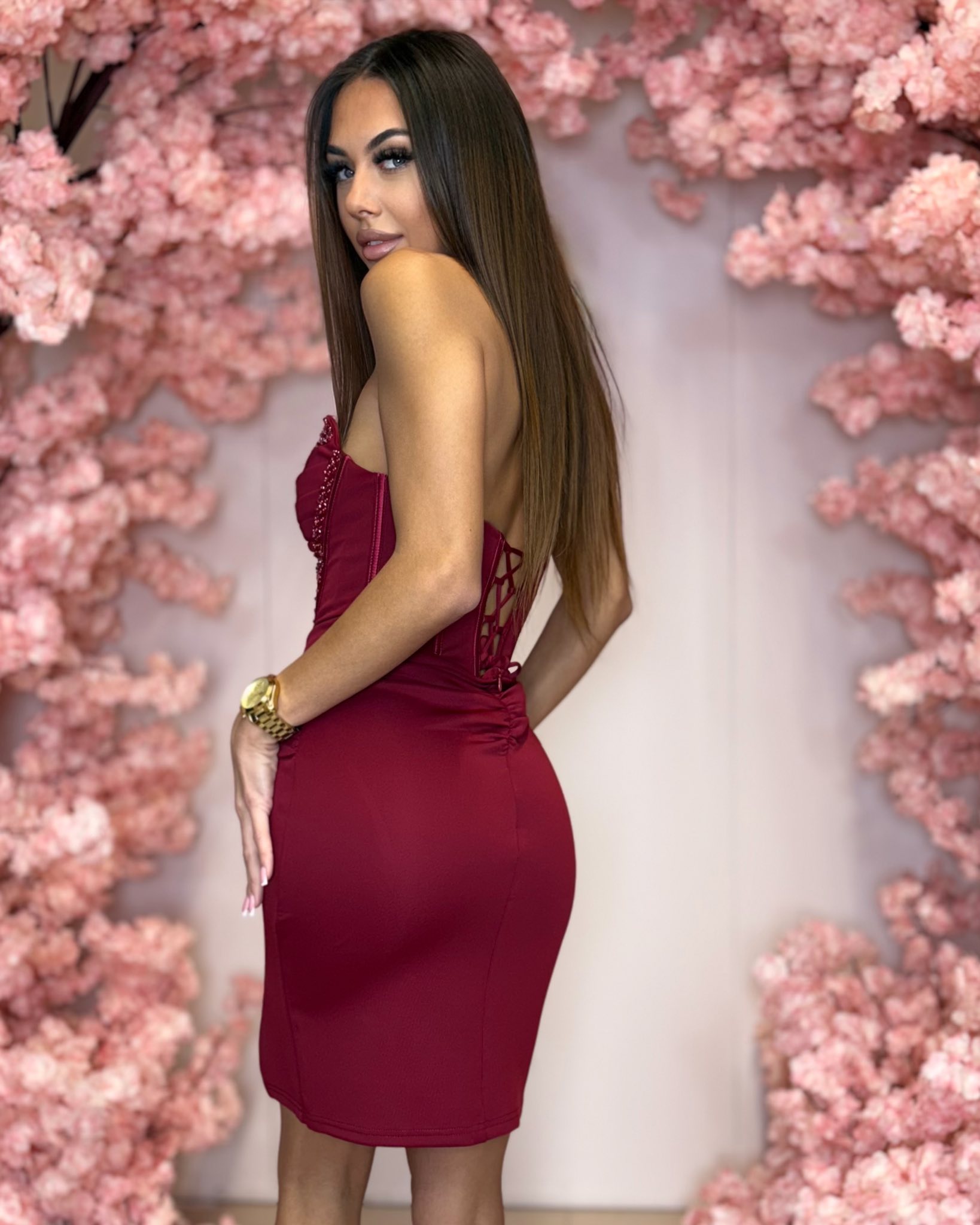 Napisz pierwszą opinię o „Luckin bordowa krótka sukienka z rozcięciem”