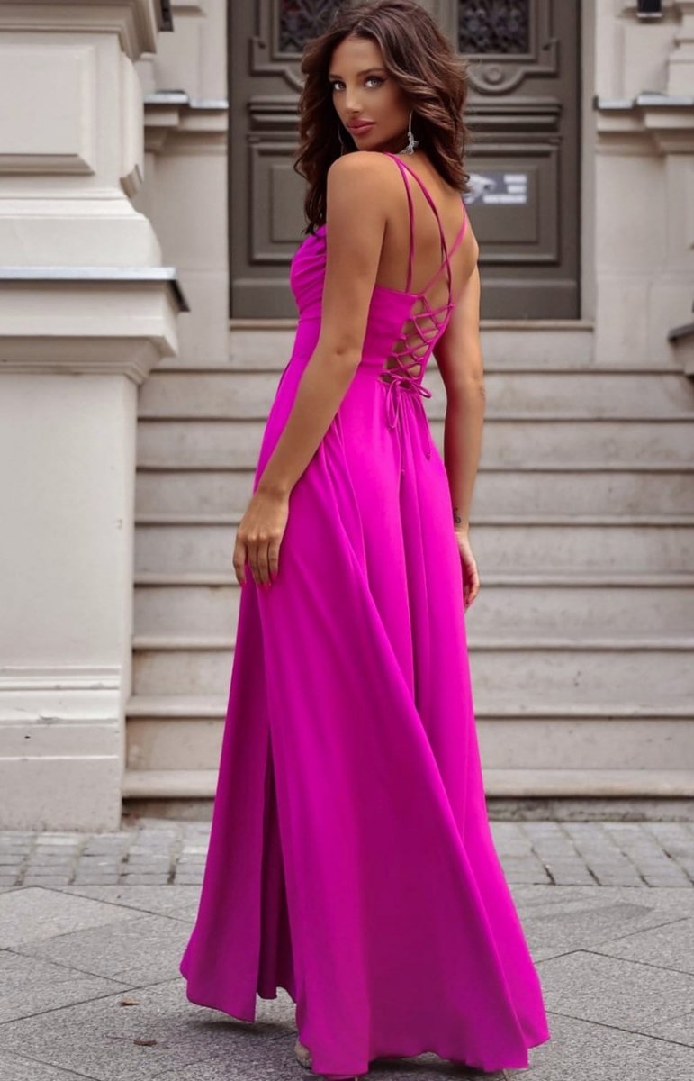 Cudowna wieczorowa sukienka na wyjątkowe okazje.  Na plecach sznurowana.  Modelka ma 170cm wzrostu