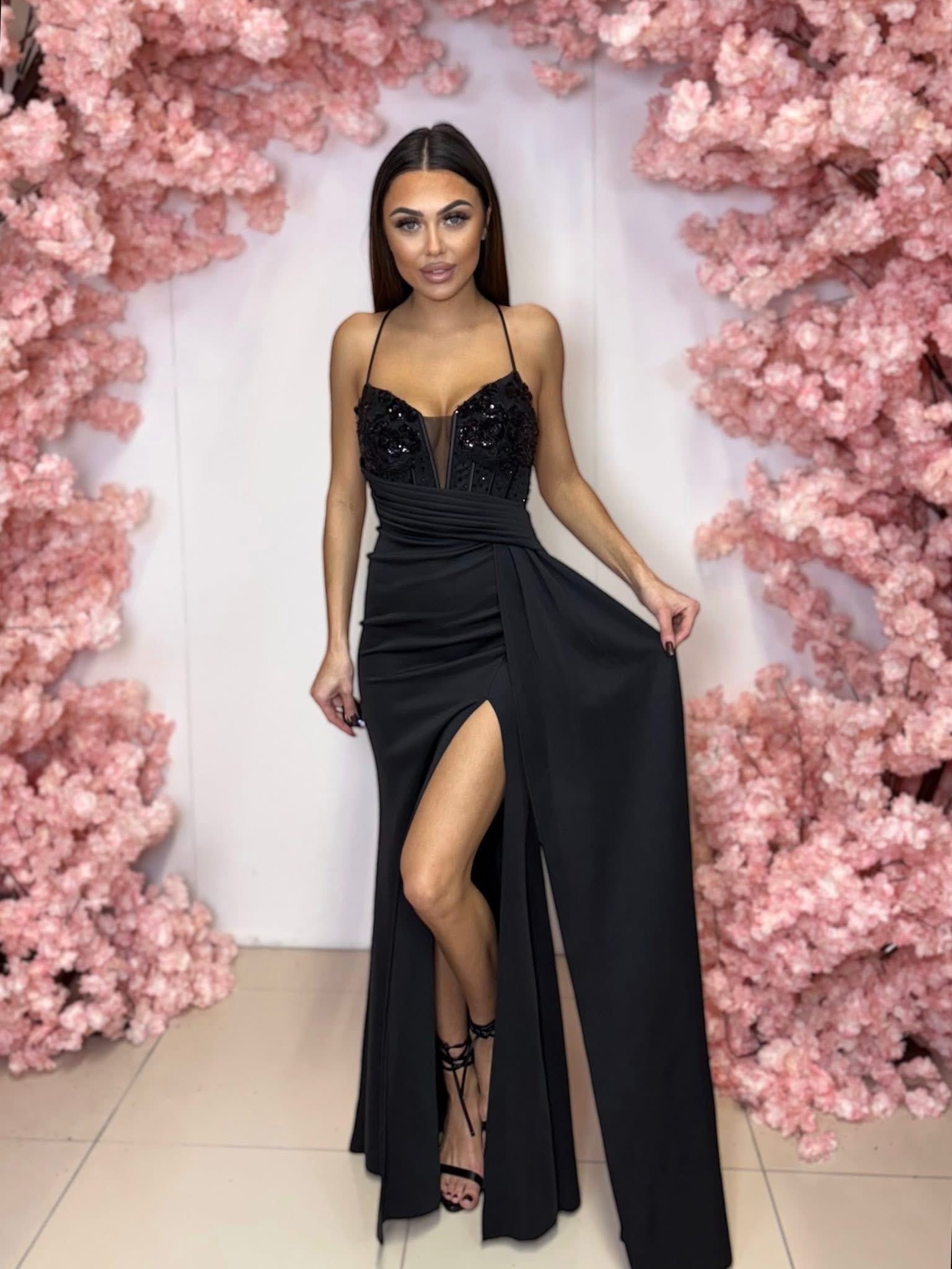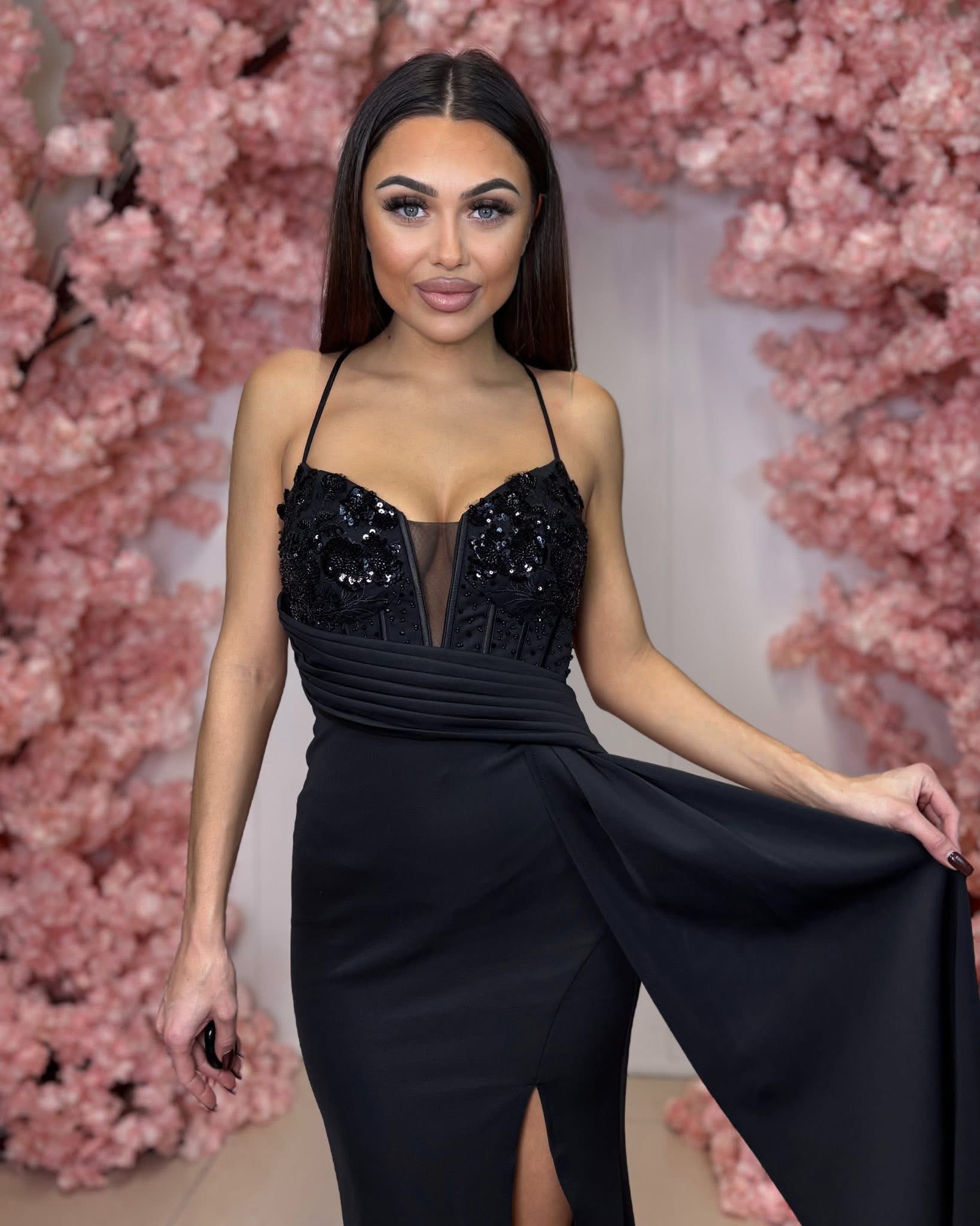 Sukienka Vea to wyjątkowa propozycja dla kobiet, które chcą wyglądać zjawiskowo podczas najważniejszych okazji. Ten model łączy klasyczną czerń z efektownymi zdobieniami, tworząc stylizację pełną elegancji i kobiecego charakteru.